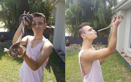 Người đàn ông bị con rắn lớn dài cả mét cuốn chặt quanh người, cắn sâu vào tay trái. Trong khi nạn nhân cho rằng con rắn chỉ là rắn hổ trâu không độc thì nhiều người lại khẳng định đây chính là hổ mang chúa kịch độc, vô cùng nguy hiểm.