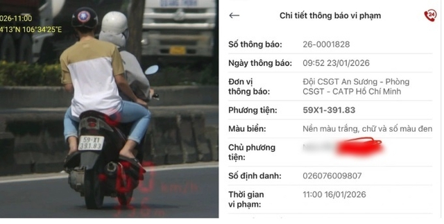 Sau gần 7 năm, anh H. bất ngờ nhận được thông báo phạt nguội hiển thị trên ứng dụng VNeID. Theo thông báo, người điều khiển chiếc Yamaha Luvias bị ghi nhận chạy quá tốc độ quy định 10-20km/h. Vi phạm được xác định xảy ra vào ngày 16/1.