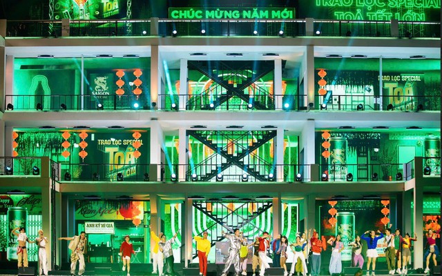 Pháo hoa trên cao, "mưa lộc" dưới thấp, âm nhạc và sắc xanh Bia Saigon Special cùng bùng nổ, biến khoảnh khắc đếm ngược thành một nghi thức ăn mừng mang đậm dấu ấn địa phương. Thiết kế sân khấu lấy cảm hứng từ những khu chung cư quen thuộc của Sài Gòn, kết hợp cùng ngôn ngữ âm thanh hiện đại, đã vẽ nên bức tranh Tết nơi truyền thống và nhịp sống đương đại giao thoa một cách tự nhiên.