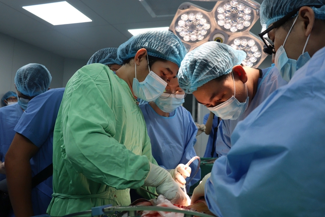 Bác sĩ Bệnh viện Nhi Đồng 2 phẫu thuật cho bệnh nhi.