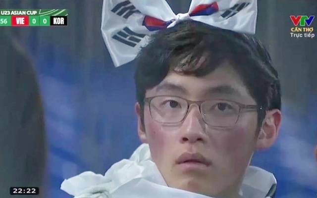 Một cổ động viên Hàn Quốc trực tiếp đi cổ vũ U23 Hàn Quốc, biểu cảm sốc lên thẳng hot search (Ảnh chụp màn hình)