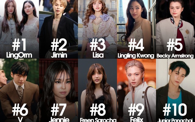 Lisa - người có mùa PFW ổn nhất trong bộ tứ đứng ở vị trí top 3, đại diện Louis Vuitton với 10,79% share of voice - con số vượt xa nhiều đại diện phương Tây. Thế nhưng, nữ idol Kpop gốc Thái phải san sẻ ánh hào quang với Jimin, LingOrm và Becky Armstrong. Điều này phản ánh rõ xu hướng: BLACKPINK vẫn là "biểu tượng quyền lực", nhưng không còn độc quyền spotlight.