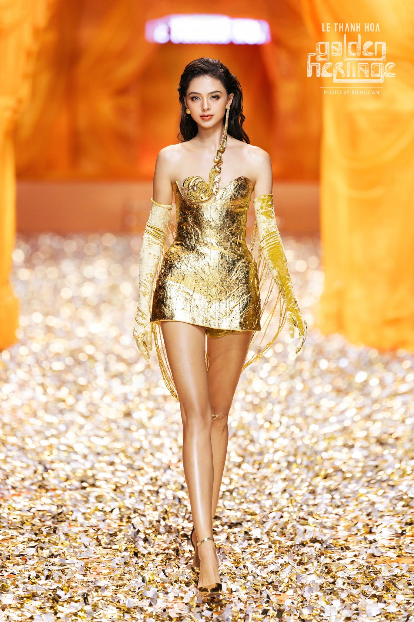 Bà xã Bùi Tiến Dũng toả sáng lấp lánh khi được trở lại sàn catwalk nơi cô thực hiện ước mơ, đam mê của mình