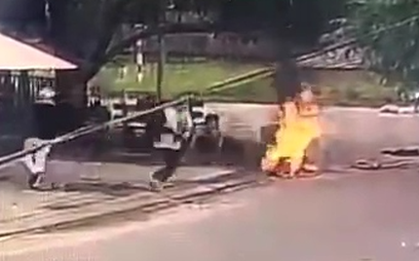 Được mọi người xịt dây màu trang trí lên đầu trong đám cưới, cô dâu không ngờ bị bỏng khá nặng ở mặt, hình ảnh cô quấn băng như xác ướp khiến mọi người sợ hãi.