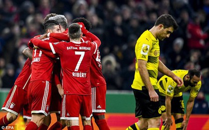 Hai bàn thắng của Boateng và Muller đã giúp Bayern vượt qua Dortmund với tỷ số 2-1 ở vòng 1/8 Cúp Quốc gia Đức, đồng thời cũng biến gã khổng lồ vùng Ruhr trở thành cựu vương.