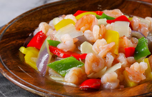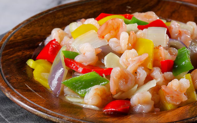 Hãy chuẩn bị một lượng tôm vừa đủ khẩu phần ăn. Sau khi sơ chế sạch thì ướp tôm với một chút gia vị, bột tiêu trong khoảng 10 phút. Tiếp đó đun nóng chảo với một chút dầu ăn rồi cho tôm vào xào đến khi đổi màu. Tiếp đó cho ớt chuông xanh và đỏ thái miếng nhỏ vào, đảo đều vài lần. Nêm nếm gia vị cho vừa ăn là xong. Món ăn tươi ngon, giòn tan và không hề ngấy dầu mỡ.