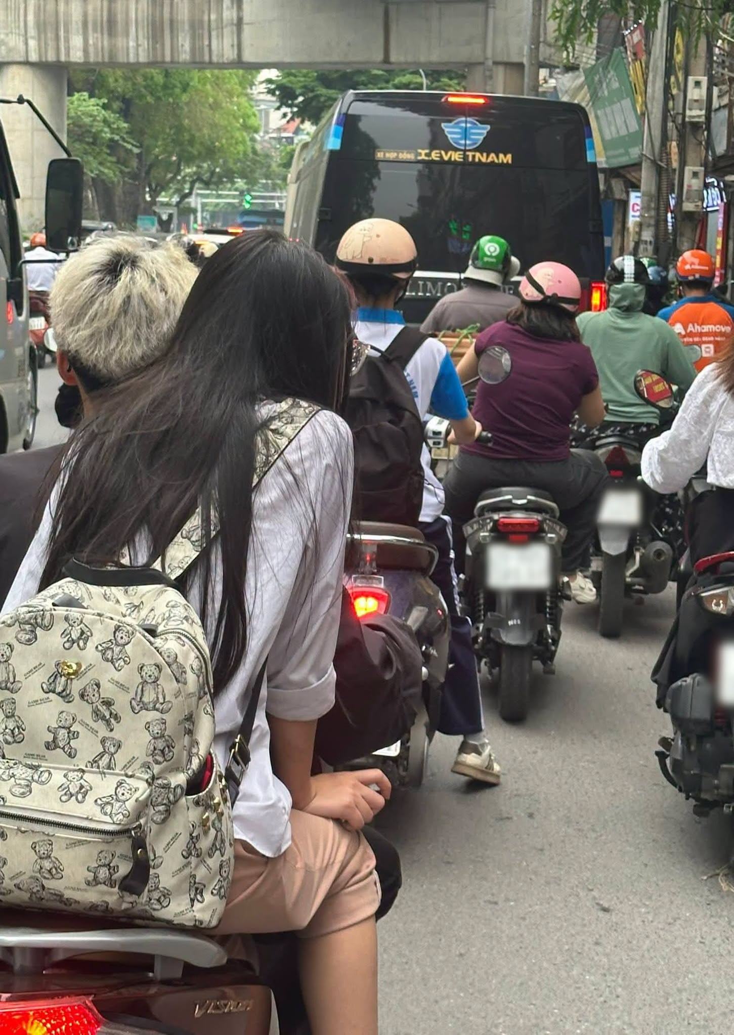 Từ người ngồi trước với mái tóc nhuộm sáng nổi bật, chiếc xe máy không gắn biển số, việc không đội mũ bảo hiểm, cho đến chi tiết học sinh ngồi sau cầm một thứ có vẻ như là pod (thuốc lá điện tử), tất cả cùng xuất hiện trong một khung hình. Chính combo này khiến bức ảnh nhanh chóng lan truyền, kéo theo nhiều ý kiến trái chiều.