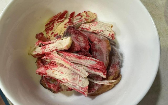 Nếu nghĩ đây chỉ là bát thịt bình thường được tẩm bột ớt hay gia vị thì bạn đã hoàn toàn nhầm. Thực chất, đây là bát thịt nấm mốc - hậu quả của việc bảo quản thực phẩm sai cách trong thời tiết nồm ẩm.