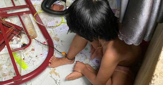 Trước đó, khuya 30-11, trên mạng xã hội đăng tải các đoạn clip cho thấy 1 cháu gái khoảng 9 tuổi bị xích trong 1 căn phòng. Căn phòng để đồ đạc lộn xộn, bẩn thỉu. Do bị xích chân nên cháu gái phải ăn uống và đi vệ sinh ngay trong phòng.