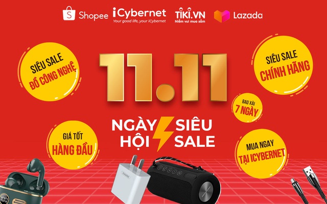 "Lễ hội mua sắm 11/11 - sale to chưa từng có" tại iCybernet chỉ diễn ra trong ngày 11/11/2021, nhanh tay truy cập website iCybernet hoặc tìm kiếm iCybernet trên sàn thương mại điện tử Shopee, Lazada, Tiki để được thoả sức sắm đồ công nghệ với giá hời.