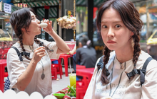 Triệu Vy trang điểm nhẹ nhàng, diện trang phục khoẻ khoắn tới dự buổi khai trương quán lẩu của người bạn thân thiết Tiền Đá Đa