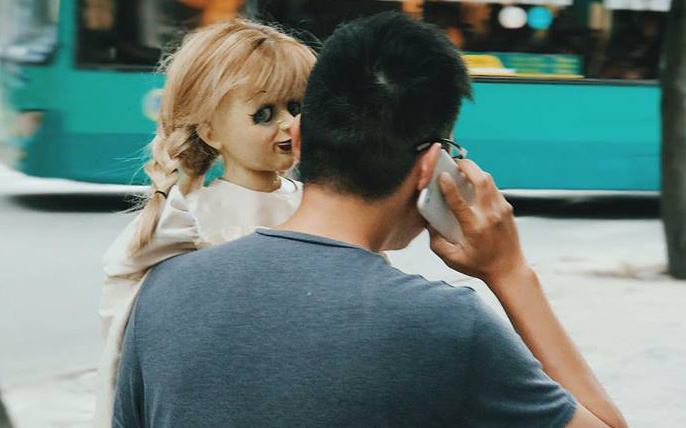 Annabelle gây khiếp sợ trong rạp chiếu phim, vậy còn khi cô búp bê được nghênh ngang "vác" ra ngoài đường phố Sài Gòn thì phản ứng của người ta thế nào?