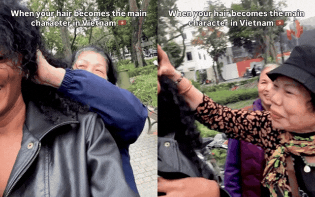 Các cụ bà vây quanh cô gái, không ngần ngại chạm nhẹ vào những lọn tóc, ánh mắt lấp lánh sự thích thú. Có người còn vừa cười vừa xuýt xoa, không ngừng nói: “Tóc thật này, dày thế”, “Tóc đẹp quá” đã tạo nên một khung cảnh vô cùng náo nhiệt và ấm áp ngay giữa lòng phố cổ. Thay vì cảm thấy khó chịu, cô gái ngoại quốc liên tục nở nụ cười rạng rỡ, tận hưởng khoảnh khắc mình trở thành "nhân vật chính" theo một cách đặc biệt nhất.