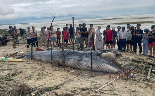 Lực lượng Bộ đội Biên phòng và chính quyền địa phương nhanh chóng có mặt, phong tỏa khu vực để đảm bảo an toàn và vệ sinh môi trường. Theo ghi nhận của Báo Đà Nẵng, xác cá đã chết trước đó, có dấu hiệu trôi từ xa vào và bắt đầu phân hủy nhẹ. Giữa đêm mưa gió, nhiều người dân địa phương vẫn ra biển thắp hương quanh xác cá, gọi đây là “Ông lụy bờ” – một nghi lễ quen thuộc của ngư dân miền Trung khi cá voi dạt vào bờ.