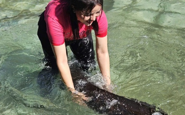 Đây hiện là con cá tầm lớn nhất trong các trang trại nuôi cá tại Lai Châu. Đại diện hợp tác xã Dương Yến cho biết, cá tầm Siberi chỉ sinh trưởng tốt trong môi trường cá nước lạnh, nơi nhiệt độ được duy trì ổn định từ 18-22°C, điều kiện lý tưởng giúp thịt cá săn chắc, ngọt thanh và đậm vị đặc trưng.