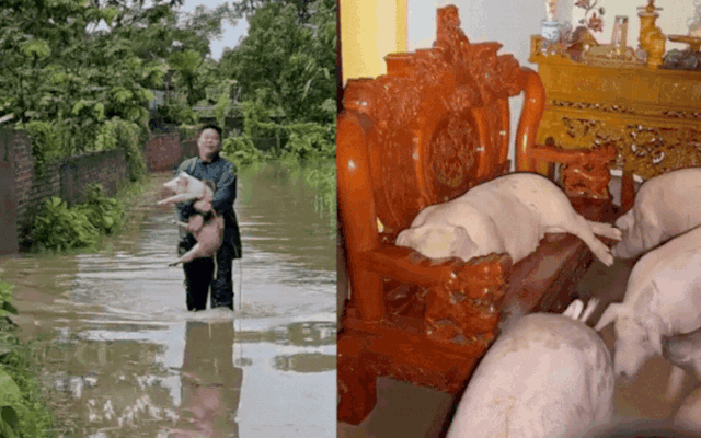 Trên các nền tảng MXH, nhiều khoảnh khắc ghi lại màn giải cứu các bé lợn, bé chó ra khỏi vùng ngập lụt nhận về nhiều sự chú ý từ cư dân mạng. Có đàn lợn được lùa lên phòng khách, phòng thờ của gia đình để tránh ngập; có những chú lợn bé hơn thì được “cưỡng chế” ra khỏi vùng lũ; có mẹ con chú chó lại được lót ổ nằm chậu đẩy đi;...