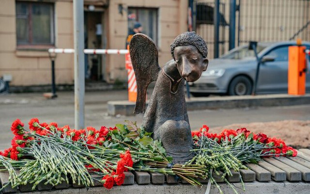 Tác phẩm "Sad Angel" (Thiên thần buồn) được đặt bên ngoài một trường y ở thành phố Saint Petersburg, Nga. Ảnh: Meduza