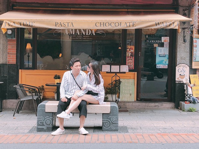 Có đôi khi, Trấn Thành cùng bà xã chỉ cần diện lên mình chiếc áo sơ mi kẻ sọc, áo thun trắng đơn giản, trẻ trung hay cùng đi 1 mẫu sneakers thôi là cũng đủ đẹp cả đôi, lại là tuyệt chiêu đánh dấu "chủ quyền" vô cùng ngọt ngào.