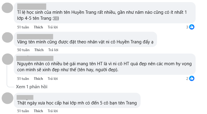 Những bình luận cho thấy mức độ phổ biến của cái tên Huyền Trang (Ảnh chụp màn hình)