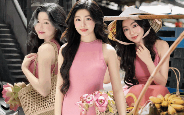 Để hoàn thiện phong cách tiểu thư nhẹ nhàng, Lọ Lem khéo mix match cùng dép đế cao và chiếc túi cói nhỏ xinh. Điểm nhấn tinh tế là bó hoa sen rực rỡ, quá hợp với outfit hường phấn ngọt ngào, giúp Lọ Lem vốn đã xinh nay càng đậm chất nàng thơ giữa phố phường Sài Gòn.