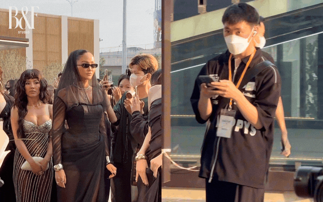 Đáng chú ý, tại sự kiện này cũng bắt gặp sự xuất hiện của chồng H'Hen Niê khi anh âm thầm tháp tùng cô. Từ xa, hòa mình trong đám đông, nhiếp ảnh gia Tuấn Khôi mặc cây đen đơn giản, lặng lẽ giơ cao máy cố gắng chụp ảnh vợ. Dù bịt kín mặt, đôi mắt Tuấn Khôi vẫn ánh lên sự tự hào và niềm vui khi nhìn người vợ của mình tỏa sáng. Nam nhiếp ảnh gia lộ vẻ bối rối khi ở nơi đông người, ngay sau đó anh cũng vội vàng rời đi sang một lối khác.