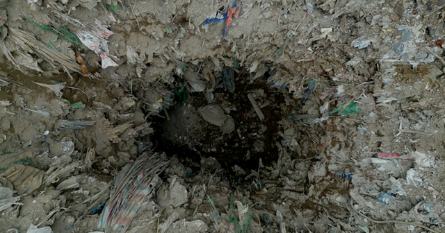 Hố rác sâu nhiều mét với các lớp rác thải chủ yếu là vật liệu khó phân huỷ.