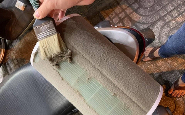 Sáng 2/12, một bức ảnh được ghi nhận là bên trong máy lọc không khí của một gia đình sinh sống tại Nguyễn Văn Cừ, Long Biên, Hà Nội nhận được nhiều sự quan tâm. Cụ thể, tấm màng bọc bị bám lớp bụi bẩn dày đặc, gần như không còn khe hở.