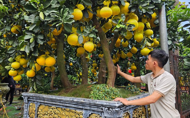 Chậu bưởi Diễn này có khoảng 400 trái bưởi thực, tức trái được nuôi tự nhiên chứ không phải trái ghép trang trí. Số lượng trái dày đặc phủ kín toàn bộ tán cây, tạo nên vẻ sung túc - yếu tố rất được ưa chuộng trong chơi cây ngày Tết. Theo anh Hà, để cây giữ được lượng trái lớn như vậy đòi hỏi quá trình chăm sóc nhiều năm liền, từ việc chọn giống, dưỡng rễ đến canh thời điểm cho ra hoa, kết trái chuẩn xác.