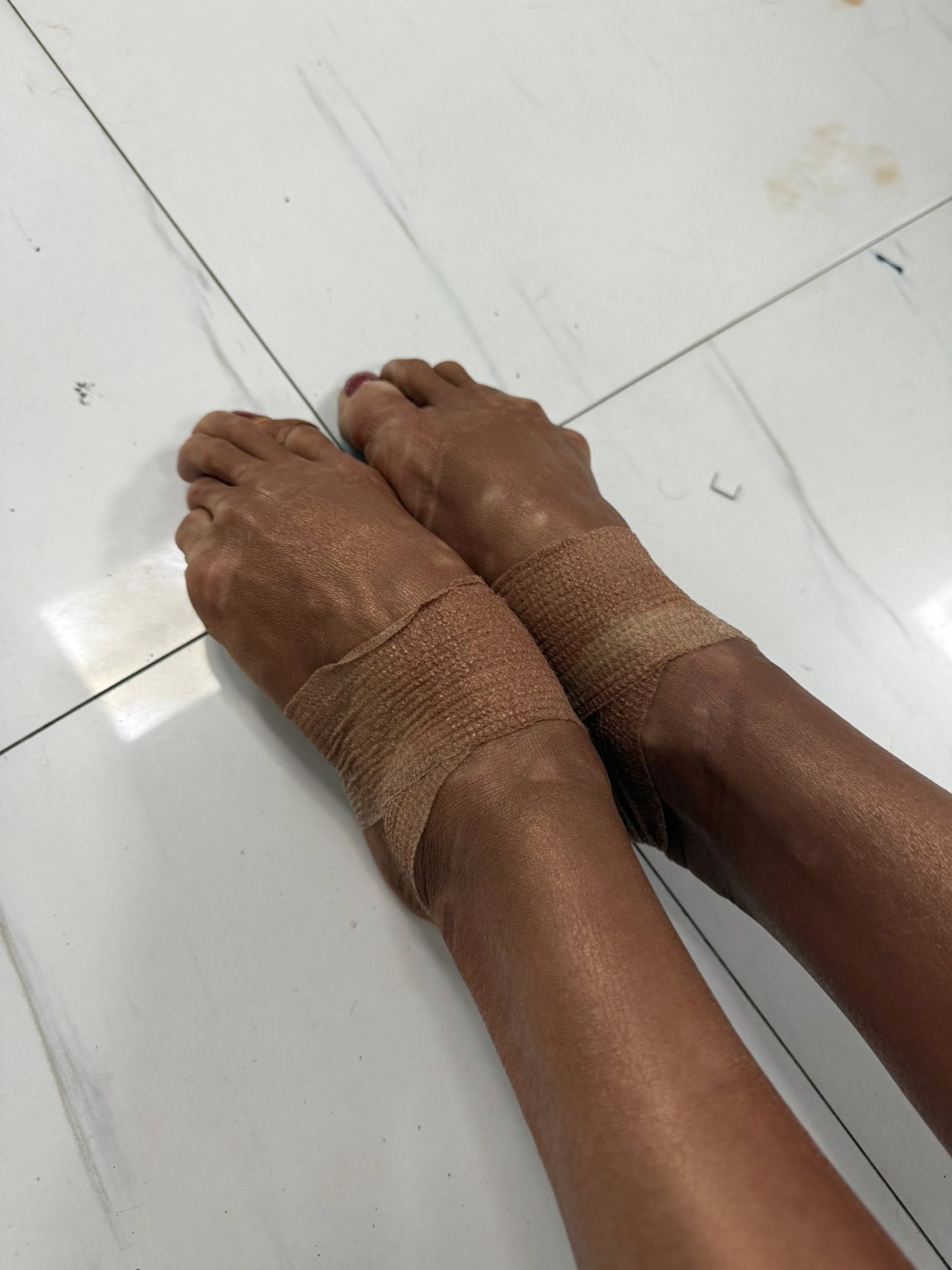 Đôi chân băng bó của kiện tướng Thu Hương (Ảnh: FBNV)