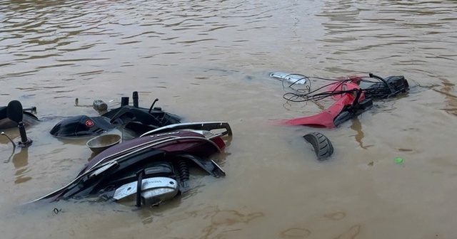 Những chiếc xe máy bị trôi trong nước lũ, lộ ra khi nước lũ rút; bùn và nước đọng trên khắp các con đường.