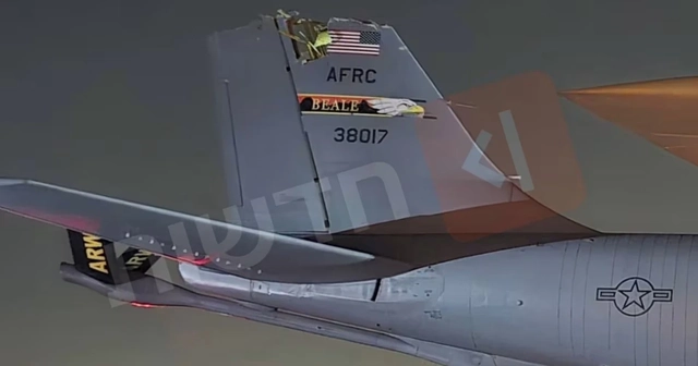 Bức ảnh được đăng tải bởi Kan - chi nhánh của CNN - cho thấy một chiếc KC-135 đậu trên đường băng tại sân bay Ben Gurion ở Israel với phần đuôi bị rách.