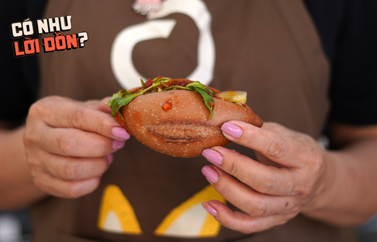Theo lời gợi ý của chủ quán, chúng mình đã gọi một ổ bánh mì gạo huyết rồng nhân 3 loại nấm ăn kèm cải chua và nước tương rô ti. Khác hoàn toàn với bánh mì trắng thông thường, ổ bánh ở đây mang sắc tím đặc trưng rất bắt mắt. Khi cắn vào, lớp vỏ được tiệm nướng lại nên có độ giòn vừa phải, không bị cứng hay vụn nát. Phần nhân nấm được chế biến đậm đà, vừa vị, khi kết hợp cùng rau răm tạo nên một mùi thơm rất riêng biệt. Với mức giá dao động từ 25.000 đến 55.000 đồng tùy loại nhân, đây thực sự là một trải nghiệm mới mẻ và đáng đồng tiền bát gạo cho những ai muốn tìm kiếm sự khác biệt.