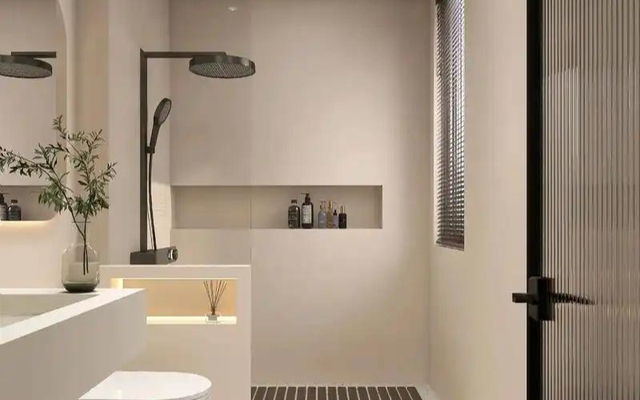Thiết kế này tạo độ chênh nhẹ giữa khu vực tắm và phần còn lại của phòng tắm, giúp nước không tràn ra ngoài mà không cần lắp vách ngăn.