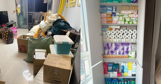 - nước giặt, khăn giấy, nước lau nhà chật kín tủ,