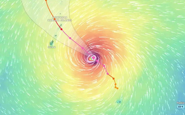 Landon Aydlett, nhà khí tượng học phụ trách điều phối cảnh báo tại Cơ quan Dự báo Thời tiết Quốc gia Guam, cho biết đường đi của cơn bão đã dịch chuyển nhẹ về phía bắc trong ngày qua, với dự báo mới nhất cho thấy khả năng đi qua Saipan thay vì chỉ phía nam Tinian.