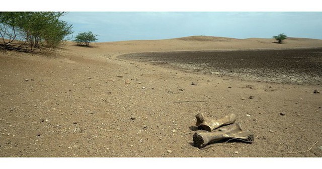 Xương voi nằm rải rác bên một nguồn nước đã khô cạn ở hạt Turkana, phía Bắc Kenya Ảnh: CÔNG ƯỚC LIÊN HỢP QUỐC VỀ CHỐNG SA MẠC HÓA (UNCCD)