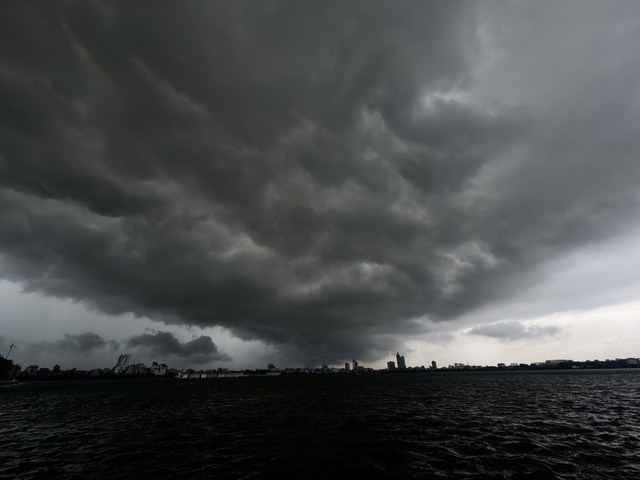 Mây đen giăng kín bầu trời Hà Nội chiều 13/10