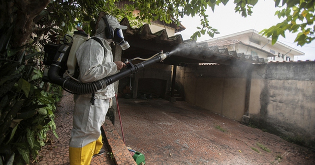 Một nhân viên phun thuốc diệt muỗi một khu phố ở phía Bắc TP São Paolo - Brazil. Ảnh: AP