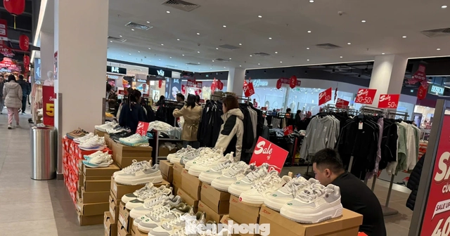 Trong khi đó, tại các trung tâm thương mại , sự phân hóa giữa các khu vực khá rõ. Các khu vực thời trang, mỹ phẩm, phụ kiện lại khá trầm lắng. Nhiều cửa hàng quần áo, giày... treo biển giảm giá sâu từ 30-70%, thậm chí xả hàng cuối năm, nhưng lượng khách vào mua không nhiều.