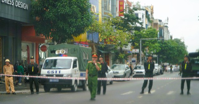 Theo quan sát, khu vực được lực lượng công an ngăn đường, phong tỏa trên phố Lê Hoàn giao cắt với đường Tống Duy Tân và Hàng Than, là nơi tập trung nhiều tiệm vàng nổi tiếng ở Thanh Hóa.