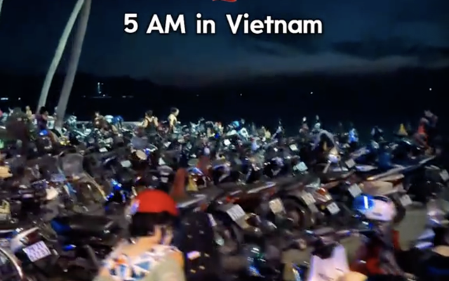 Điều mà cặp đôi nhắc đến chính là khung cảnh tại bãi biển Đà Nẵng vào lúc 5h sáng. Khi trời vẫn còn tối mờ, bãi gửi xe đã đông nghịt. Những hàng xe máy xếp kín, báo hiệu một buổi sáng nhộn nhịp sắp bắt đầu.