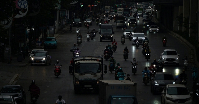 Mây đen tiếp tục kéo đến dày đặc, khiến không gian càng thêm u ám. Trời tối sầm khiến tầm nhìn giảm đáng kể, toàn bộ phương tiện di chuyển trên đường đều phải bật đèn để đảm bảo an toàn.