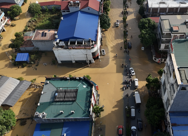 Nước sông Cầu dâng cao khiến lũ cuồn cuộn tràn vào nhấn chìm nhiều tuyến phố trung tâm ở TP.Thái Nguyên cũ (tỉnh Thái Nguyên). Nhiều hộ gia đình chỉ kịp chạy lên tầng cao, không kịp sơ tán tài sản.