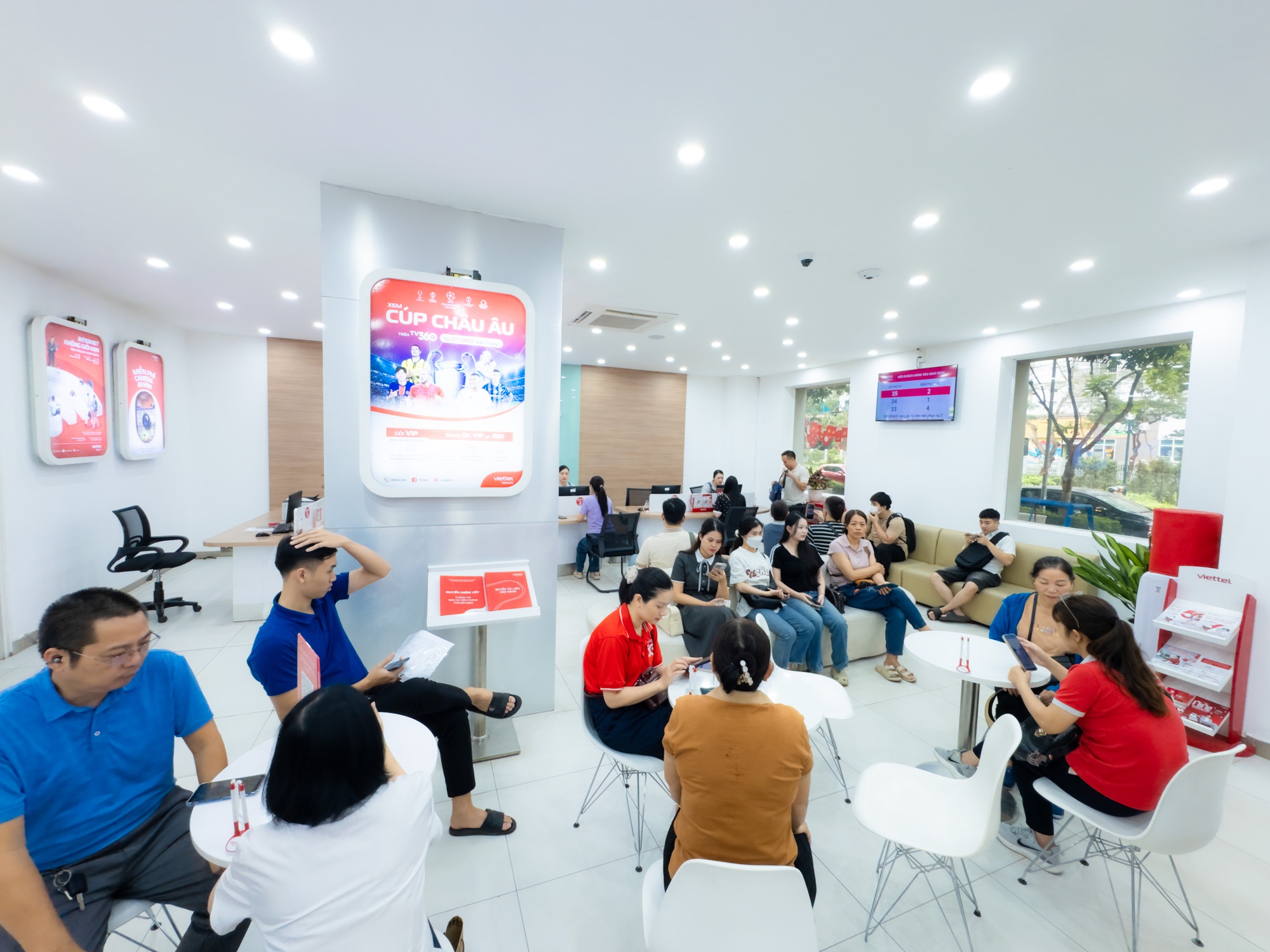 Tại một cửa hàng nhà mạng trên đường Nguyễn Chí Thanh, người dân xếp hàng lấy số và chờ đợi đến lượt