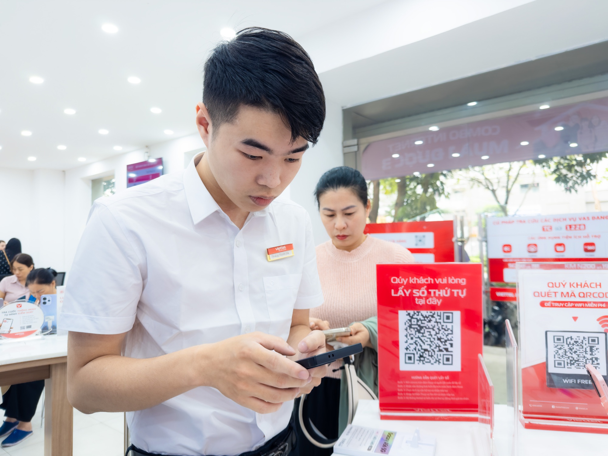 Nhân viên nhà mạng liên tục hỗ trợ khách hàng cập nhật dữ liệu thuê bao.