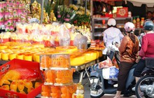 Những khay bánh tổ vàng tươi tháp bánh trái đào, bánh đường, bánh thần tài đều được sắp xếp chỉn chu