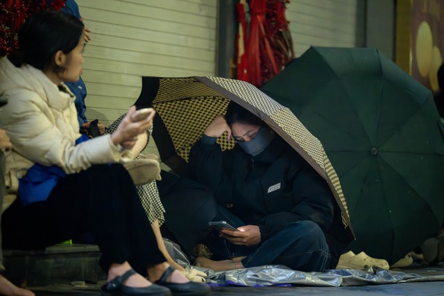 Khoảng 23h ngày 25/2, khu vực trước một cửa hàng kinh doanh vàng trên đường Cầu Giấy (Hà Nội) đã xuất hiện cảnh tượng khiến nhiều người chú ý. Thay vì cảnh thưa thớt của phố đêm, nơi đây xuất hiện hàng dài người đứng, ngồi san sát nhau, kiên nhẫn chờ tới giờ cửa hàng mở bán.