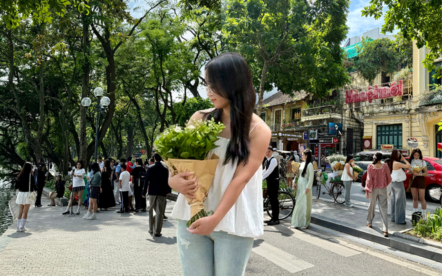 Đáng chú ý, thời gian này, khu vực quanh hồ còn xuất hiện một số xe đạp bán hoa tươi với các loài hoa đặc trưng của mùa thu như cúc họa mi, hoa sen, hoa cẩm tú cầu,... Điều này giúp các nàng thơ dễ dàng mua ngay một bó hoa làm đạo cụ hay đứng ngay tại xe chở hoa tranh thủ tạo dáng cho concept ảnh "mùa thu Hà Nội" đang hot với giới trẻ Hà thành.