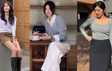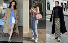 Trong những ngày lạnh, chị em có thể tham khảo set quần ngắn kết hợp với sơ mi và khoác ngoài trench coat ấm áp, thanh lịch. Để hoàn thiện set quần ngắn đẹp từ hè sang đông, Lê Hà Trúc gợi ý một số kiểu giày như sneaker trắng, giày búp bê màu trung tính. Nhờ quần short, bộ trang phục của Lê Hà Trúc giúp tôn lên đôi chân thon thả, đồng thời "ăn gian" chiều cao tối ưu mà không cần giày cao gót.