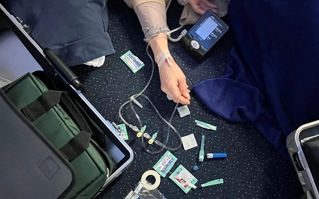 Là bác sĩ chấn thương chỉnh hình, đã lâu anh Tiến không thực hiện thao tác đặt đường truyền tĩnh mạch. Trong không gian chật hẹp, máy bay đang giảm độ cao, rung lắc nhẹ, bác sĩ cho biết anh thấy lo lắng, nhưng không có nhiều thời gian để nghĩ và lập thức lấy kim để thực hiện thao tác. May mắn, kim vào được, máu hồi tốt, truyền dịch bắt đầu chảy. Khoảng 10 phút sau, huyết áp dần cải thiện, bệnh nhân bắt đầu tỉnh táo hơn, có thể đáp ứng, nói chuyện lại.